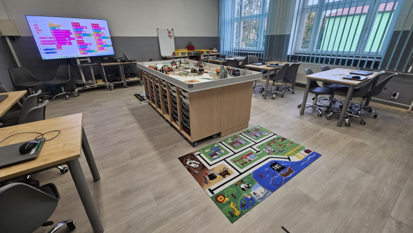 Materiál menší tloušťky na protiskluzovém podkladu, bez obvodového lemonvání, vhodný pro přejezd robotů a hraček.